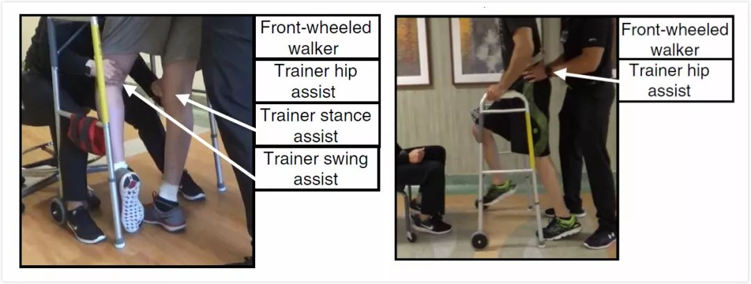 在治療16周后,患者需要助行架以及訓練員協(xié)助其膝蓋和臀部發(fā)力進行下地行走。到了43周,該患者僅需要訓練員給予輔助減重支持就能使用助行架行走。