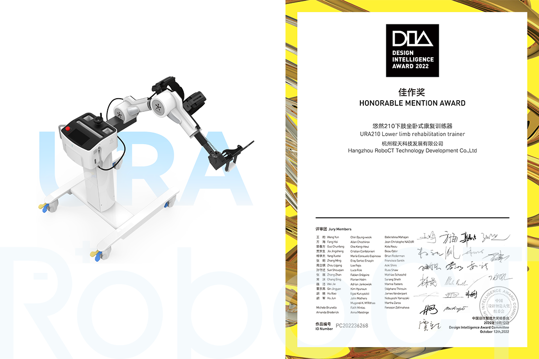 程天科技悠行康復外骨骼UGO220曾獲2021中國設計智造大獎(DIA)佳作獎,并出展2021世界工業大會國內外優秀工業設計成果展。悠行外骨骼是一款通過算法模擬生理步態,帶動患者步行訓練的智能康復機器人,能夠幫助患者重獲行走能力和實現功能代償。而程天科技于2022年正式投入市場的悠然URA系列床邊外骨骼再獲2022DIA佳作獎,出展今年的中國設計智造大展中。