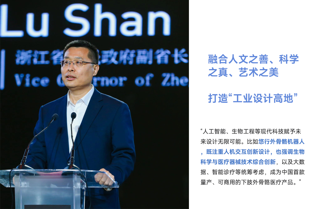 12日晚,第七屆中國設計智造大獎(Design Intelligence Award,簡稱“DIA”)全球盛典2022頒獎典禮在浙江省紹興國際會展中心盛大開啟。浙江省副省長盧山出席頒獎盛典并發表了相關講話,分享了對浙江工業設計發展的想法與體會,認為工業設計應融合人文之善、科學之真、藝術之美,肯定了人工智能、生物工程等現代科技賦予未來設計無限可能,認可程天科技悠行外骨骼在人機交互、工業設計、醫工結合等方面的創新,在醫療器械領域就科藝融合做出引領示范。