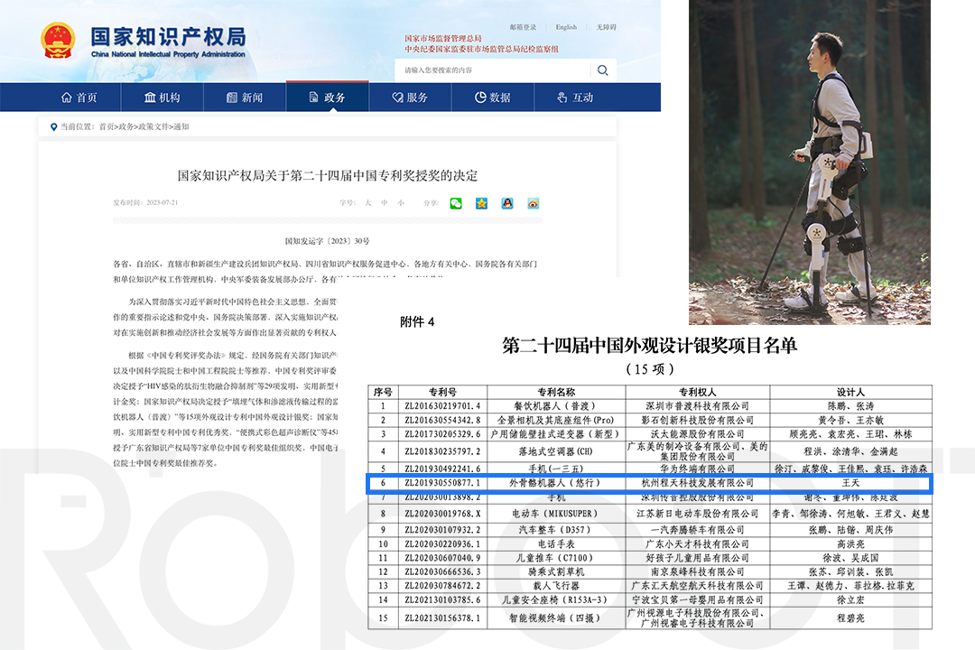 獎項 | 第二十四屆中國專利獎正式授獎,程天悠行外骨骼獲外觀銀獎