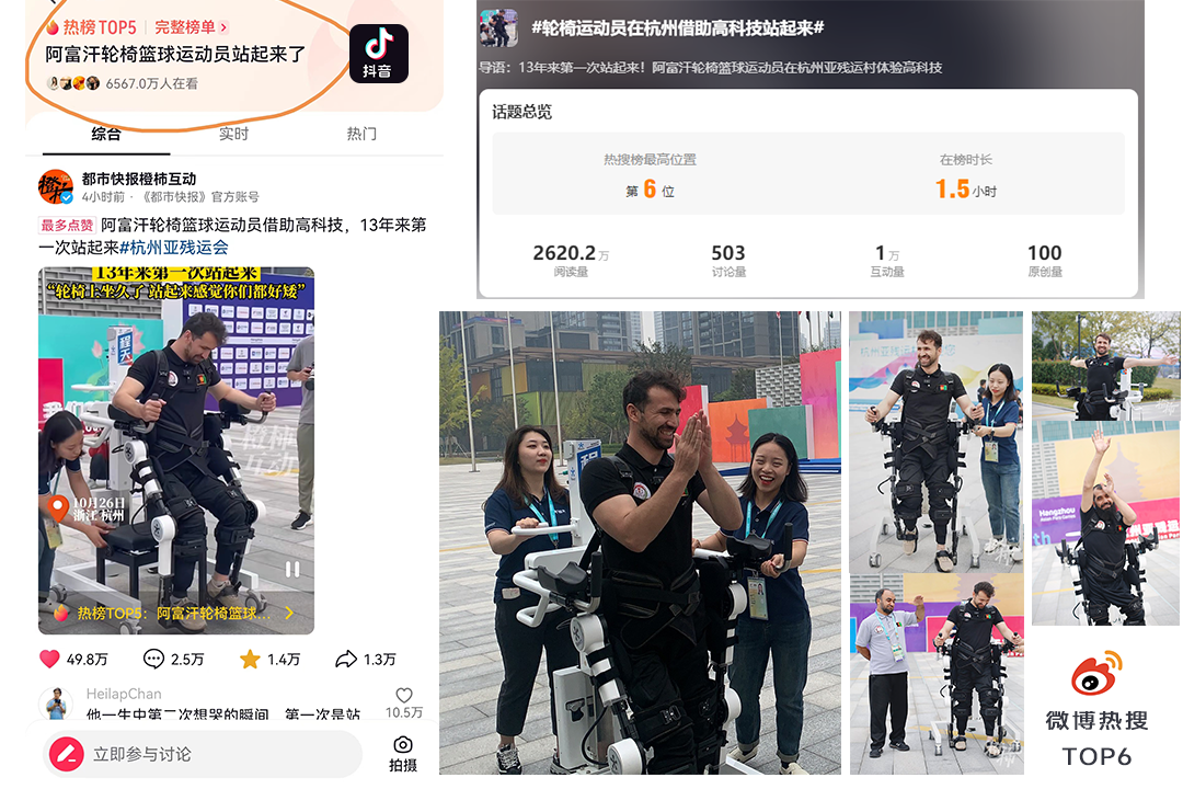 近日,杭州亞殘運村內,“阿富汗輪椅籃球運動員站起來了”的短視頻內容全網播放量上億。運動員穿戴實現站立行走的機械設備,正是來自程天科技的康復外骨骼。自22日盛大開幕以來,杭州第4屆亞洲殘疾人運動會在“兩個亞運,同樣精彩,有愛無‘礙’”的核心理念下,為我們帶來了無數的感動。