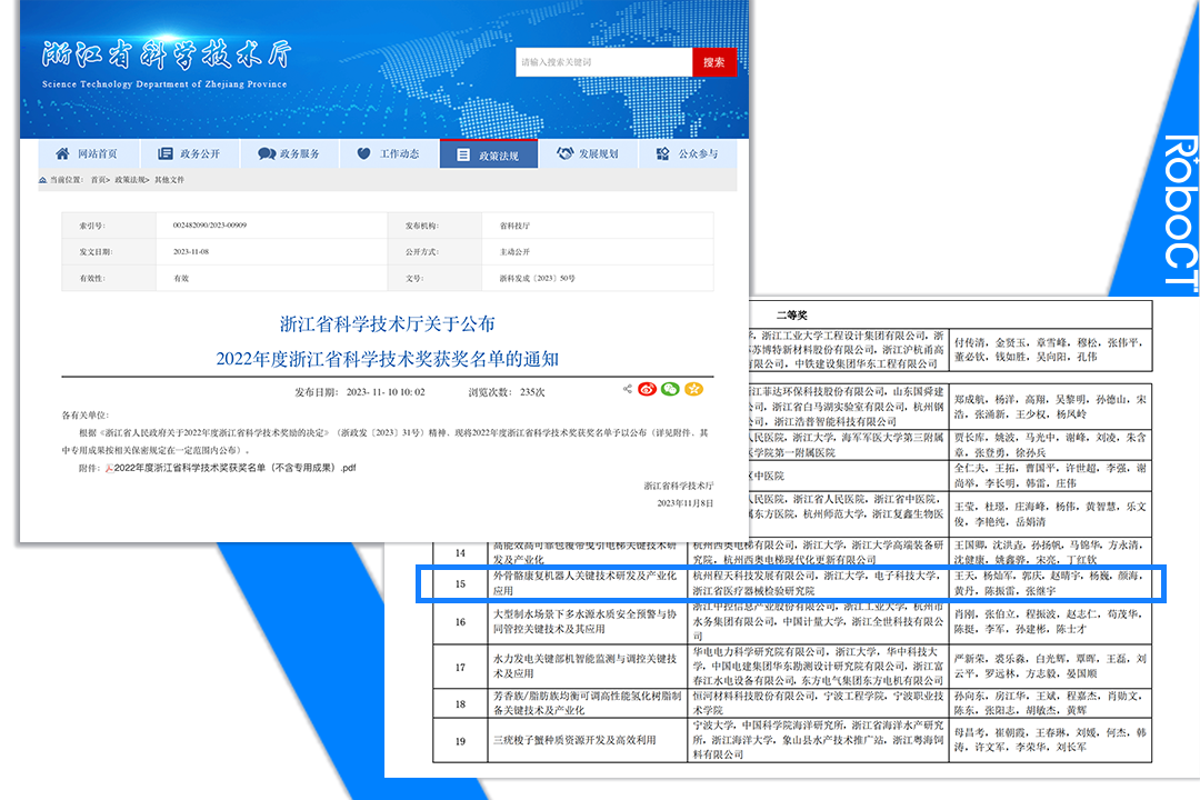 10日,浙江省創新深化大會在杭州舉行,會上公布了2022年度浙江省科學技術獎獲獎名單。由程天科技牽頭,攜手浙江大學、電子科技大學以及浙江省醫療器械檢驗研究院的“外骨骼康復機器人關鍵技術研發及產業化應用”成果獲浙江省科學進步二等獎。