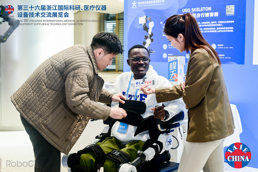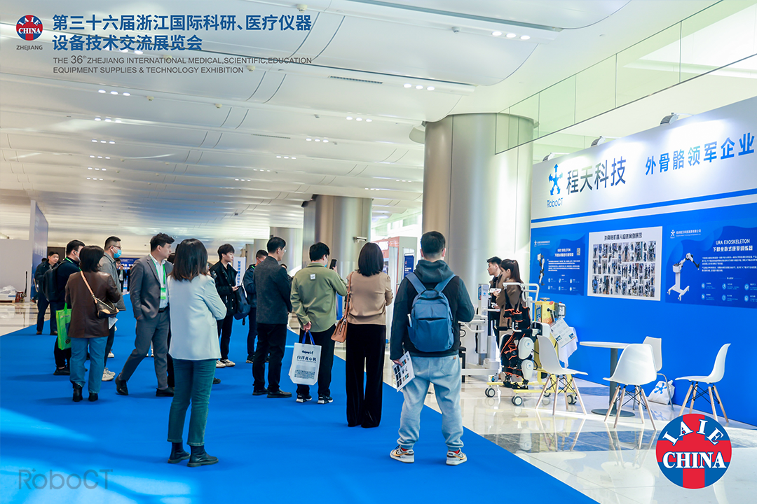 近日,第三十六屆浙江國際科研、醫療儀器設備技術交流展覽會(簡稱浙江春季醫展會)在杭州國際博覽中心拉開帷幕,展會以“新場景、新技術、新趨勢”為主題,吸引來自美國、日本、德國、意大利、荷蘭等進口品牌,以及浙江、廣東、江蘇、上海、山東、安徽、河南等省市國產品牌的近700家企業參展,展浙江創新醫療力量。程天科技攜經典系列康復外骨骼產品亮相智慧健康體驗專區,吸引了眾多參觀者的目光。