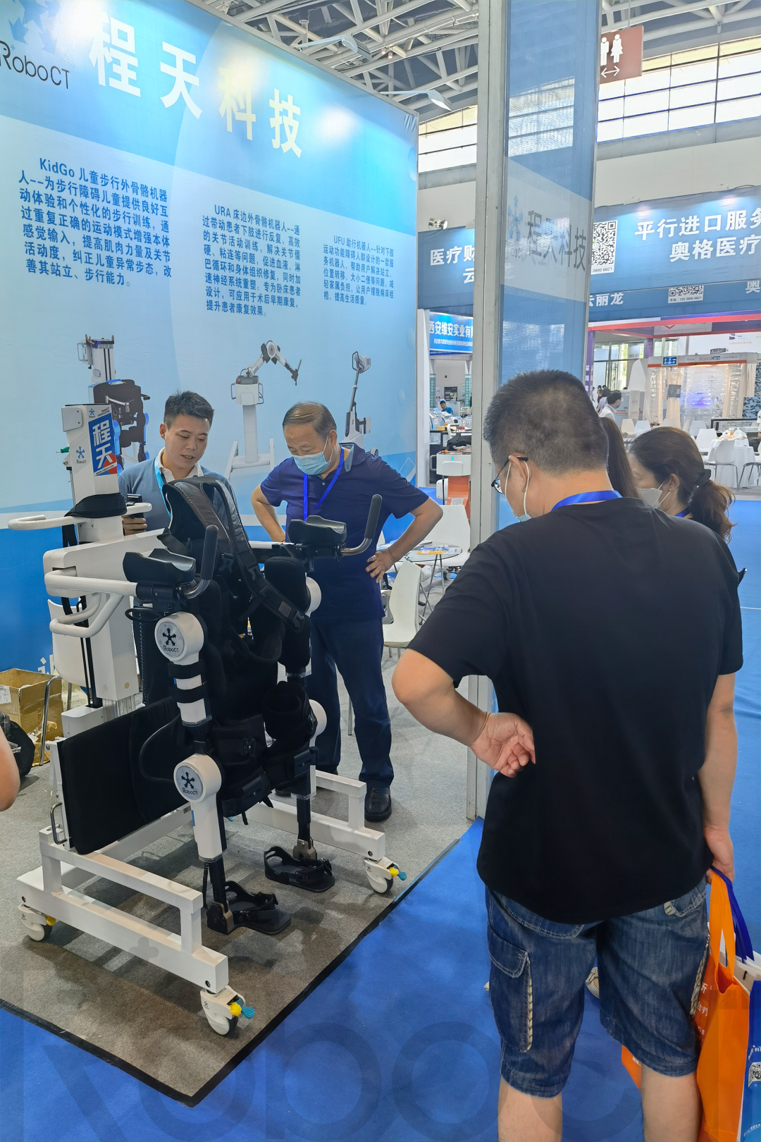 展覽期間,程天科技展位吸引了眾多客商前來(lái)咨詢,從訂單采購(gòu)、商務(wù)洽談、市場(chǎng)調(diào)研、技術(shù)交流與合作等方面開(kāi)展溝通接洽。專業(yè)觀眾在近距離觀察和體驗(yàn)了康復(fù)外骨骼設(shè)備后,都對(duì)產(chǎn)品表示了高度認(rèn)可。程天科技十分希望通過(guò)此次展會(huì)活動(dòng),進(jìn)一步推動(dòng)產(chǎn)品落地西部市場(chǎng)。