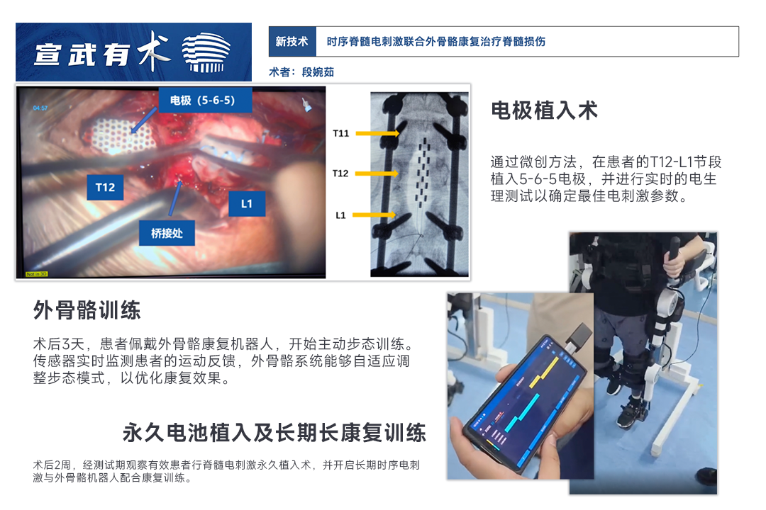 近日, 首都醫科大學宣武醫院神經外科分享了針對脊髓損傷的時序脊髓電刺激聯合外骨骼康復治療新技術,將硬膜外電刺激(Epidural Electrical Stimulation, EES)和外骨骼康復技術應用于脊髓損傷的康復中,構建完整的“神經-肌肉-機械”反饋通路,促進神經可塑性和功能重建。